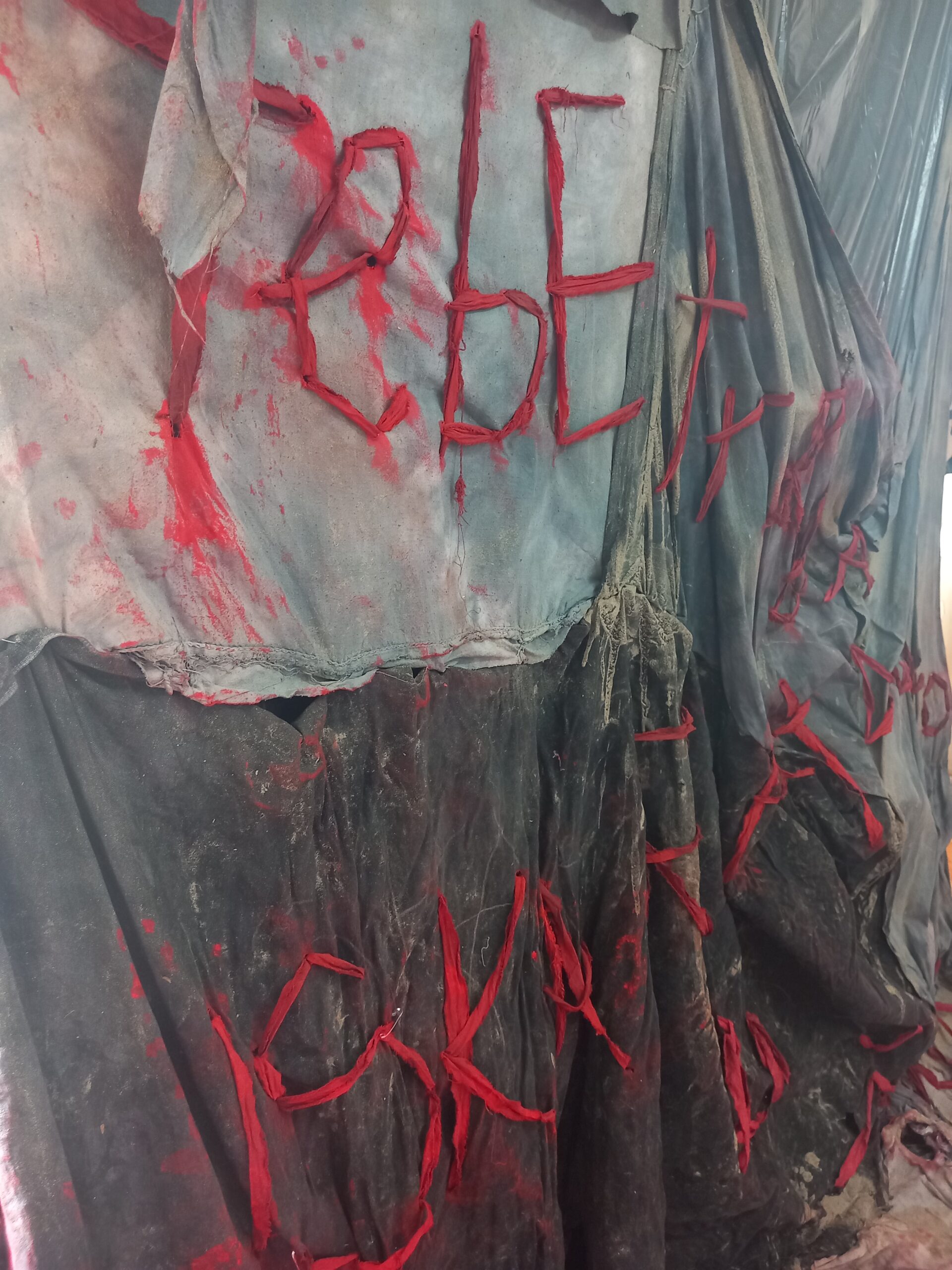 U sklopu istraživanja za diplomski rad, autorica je provela anonimnu anketu među ženama različitih starosnih dobi kako bi prikupila njihova iskustva u pojedinim socijalnim situacijama. Kroz analizu odgovora, autorica se usredotočila na šest najčešćih odgovora koje je implementirala u realizaciji instalacije u prostoru koja se sastoji od šest komada izvezenih iskaza na posebno izrađenoj podlozi od bojane stare posteljine. Kombinirajući različite tkanine u smjesi ljepila, gipsa, vode, pijeska i žarko ružičastog akrila, autorica stvara vizualni efekt koji naglašava iscrpljenost, težinu i raspadanje. Nadalje, odabrane odgovore iz ankete Bebić je reducirala na ključne riječi, oblikujući ih u ručno bojane trake i prišivajući ih na istu podlogu, sada izvezenu ženskim pismom. Autorica terminom „prišivanje ili vezenje reduciranih riječi“ opisuje tjelesne kretnje, stvarajući ne samo estetski eksperiment, već i kritički osvrt na društvene dinamike i prirodu ženskog identiteta. Kroz fizičku izvedbu i upotrebu ženskog pisma, simbolično i nasilno probadanje naglašava fizički napor i nasrtanje na tkaninu, koja predstavlja onog slabijeg i bez mogućosti samoobrane. Istovremeno, samoozljeđivanje prilikom probadanja krutog materijala, koji ostavlja ogrebotine, dodatno podsjeća na nasilje i traumu, čineći ga sastavnim dijelom umjetničkog procesa. U subverzivnom kontekstu tradicionalnih ženskih poslova, tzv. žensko pismo postaje ključno sredstvo za iščitavanje osobne i kolektivne boli, kao i dekonstrukciju patrijarhalnih struktura, pitanja roda, identiteta i društvenih struktura.