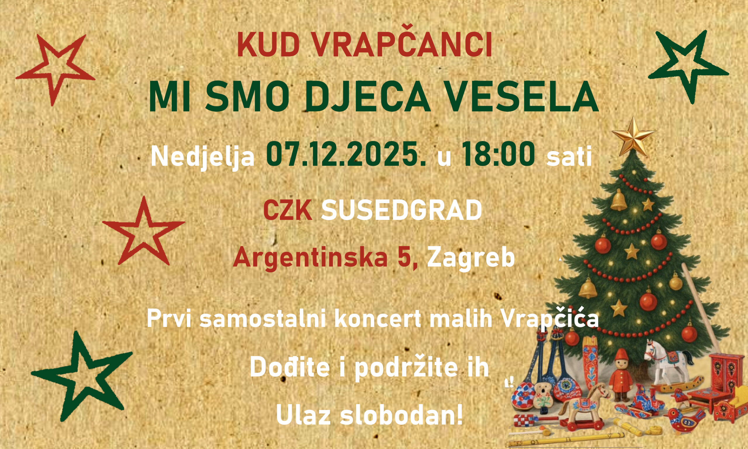 Koncert / Mi smo djeca vesela – KUD Vrapčanci / 7.12.2025. / 18:00 h