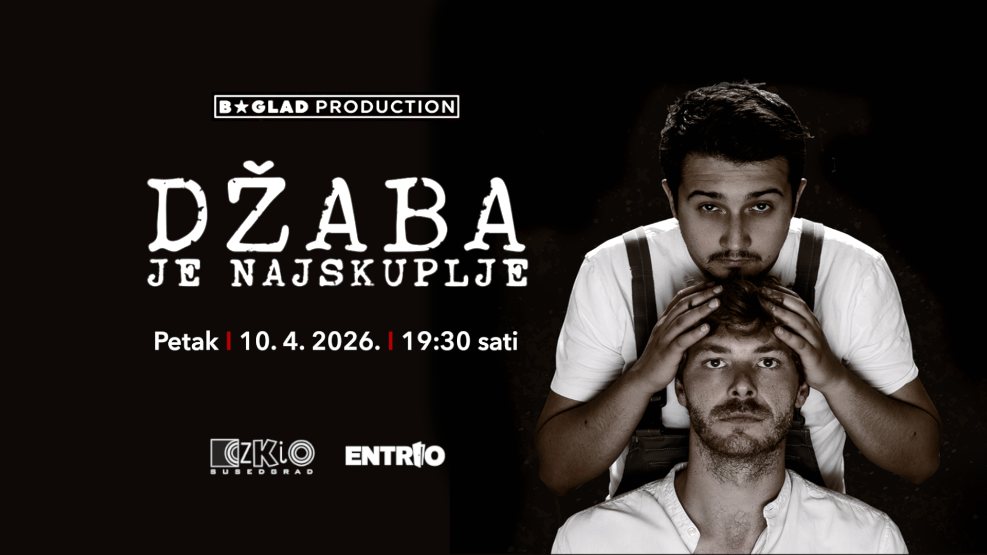 Centar za kulturu Susedgrad vas poziva 10. 4. 2026. u 19.30 na predstavu Džaba je najskuplje u izvedbi