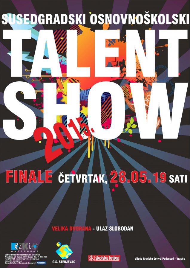SUSEDGRADSKI OSNOVNOŠKOLSKI TALENT SHOW je dio zajedničkog projekta OŠ Stenjevec i CZKIO Susedgrad, ŠPANSKO DANCE PREDSTAVLJA SUSEDGRADSKI OSNOVNOŠKOLSKI TALENT SHOW.