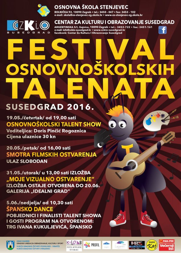 Veliki uspjeh prošlogodišnjeg Susedgradskog osnovnoškolskog Talent showa urodio je ove godine još ambicioznijim formatom - "Festivalom osnovnoškolskih talenata". Radi se o projektu koji se sada sastoji od četiri manifestacije koje će se 19.,20. i 31.05.2016. održati u CZKIO Susedgrad (Argentinska 5, Gajnice), a završni "Špansko dance" 5.06.2016. na otvorenoj pozornici na Trgu Ivana Kukuljevića u Španskom.